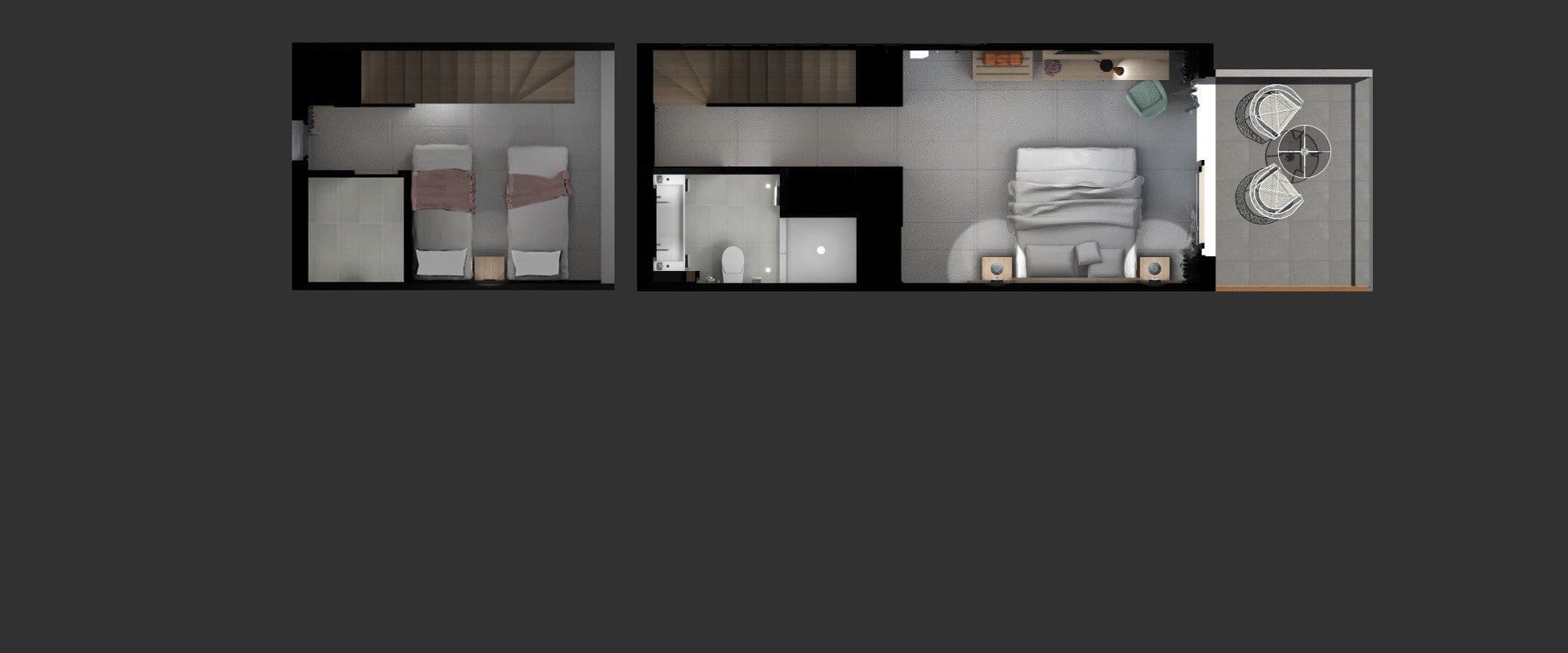 Dies ist ein Loft/eine Maisonette mit zwei Ebenen und insgesamt 90 qm, der bis zu 8 Personen beherbergen kann. Eine Treppe führt in die obere Etage/Ebene, wo sich das zweite Schlafzimmer mit 2 Einzelbetten (0,90 m x 2,0 m) befindet. Im Erdgeschoss befindet sich das Schlafzimmer mit einem Doppelbett. 2 Badezimmer (eines auf jeder Ebene) und eine Küchenzeile, die sich im Erdgeschoss befindet. Die Möblierung besteht aus einem Schrank mit Schiebetüren, einem Tisch und einem Hocker. Die Badezimmer verfügen über eine Dusche, einen Haartrockner, ein Sicherheitstelefon und eine Sicherheitskordel. Alle Superior Lofts/Maisonetten haben Sat-TV, WLAN, ein Telefon, einen Safe, einen Ventilator und eine individuell regulierbare Klimaanlage für jede Etage. Schließlich verfügen alle Zimmer über einen möblierten Balkon mit herrlicher Aussicht für endlose Stunden der Entspannung, die dem mediterranen Sommer angemessen sind.