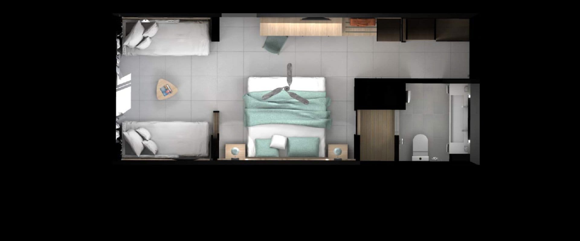Όλα τα δωμάτια είναι πλήρως κλιματιζόμενα και περιλαμβάνουν σύστημα κάρτας εξοικονόμησης ενέργειας, προσαρμοσμένο στο κλειδί του δωματίου. Είναι εξοπλισμένα με ένα king size κρεβάτι και δύο μονά κρεβάτια που μπορούν να φιλοξενήσουν έως 4 άτομα.