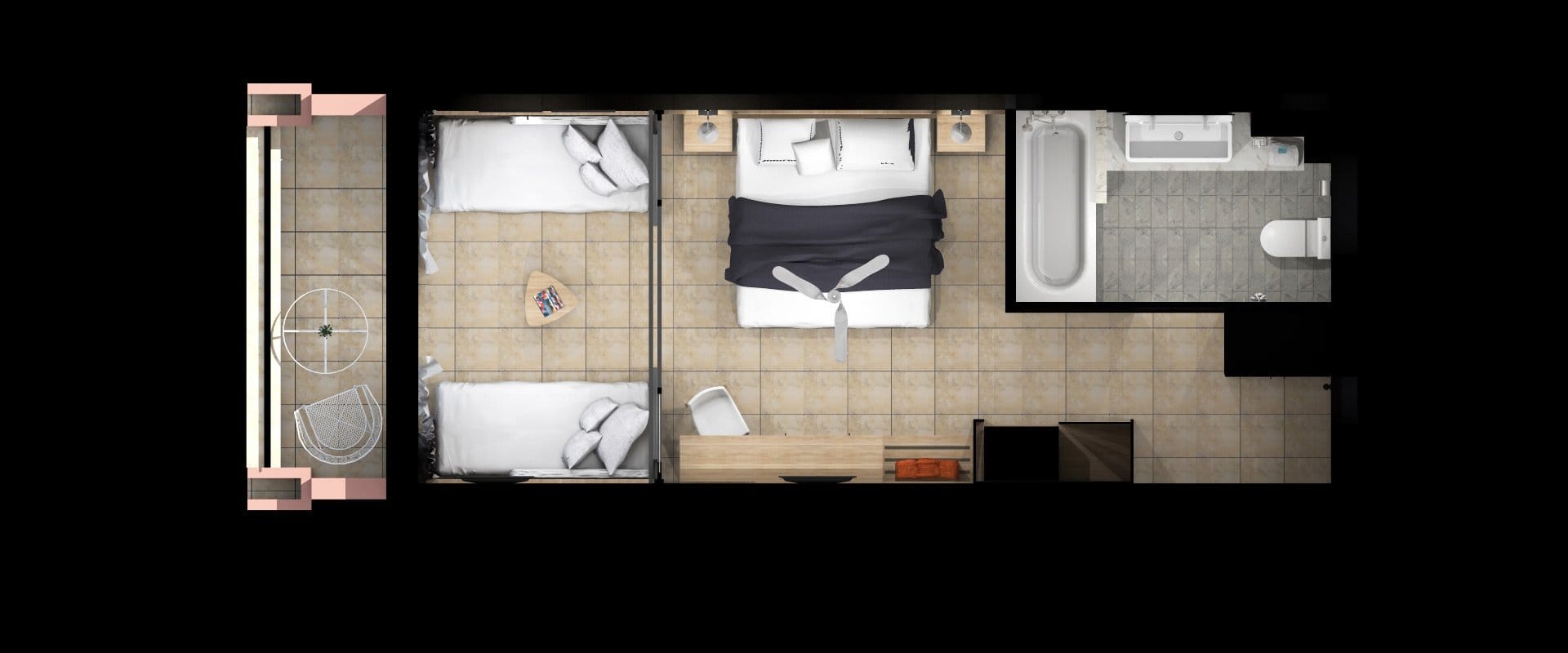 *Σημείωση: Οι φωτογραφίες των δωματίων είναι ενδεικτικές καθώς η θέα και η διάταξη διαφέρουν από δωμάτιο σε δωμάτιο. Τα δωμάτιά μας με θέα στη θάλασσα χωρίζονται σε τρία επίπεδα (1ος όροφος, 2ος όροφος και βεράντα στο ισόγειο.) Η κατανομή του επιπέδου δωματίου εξαρτάται από τη διαθεσιμότητα.